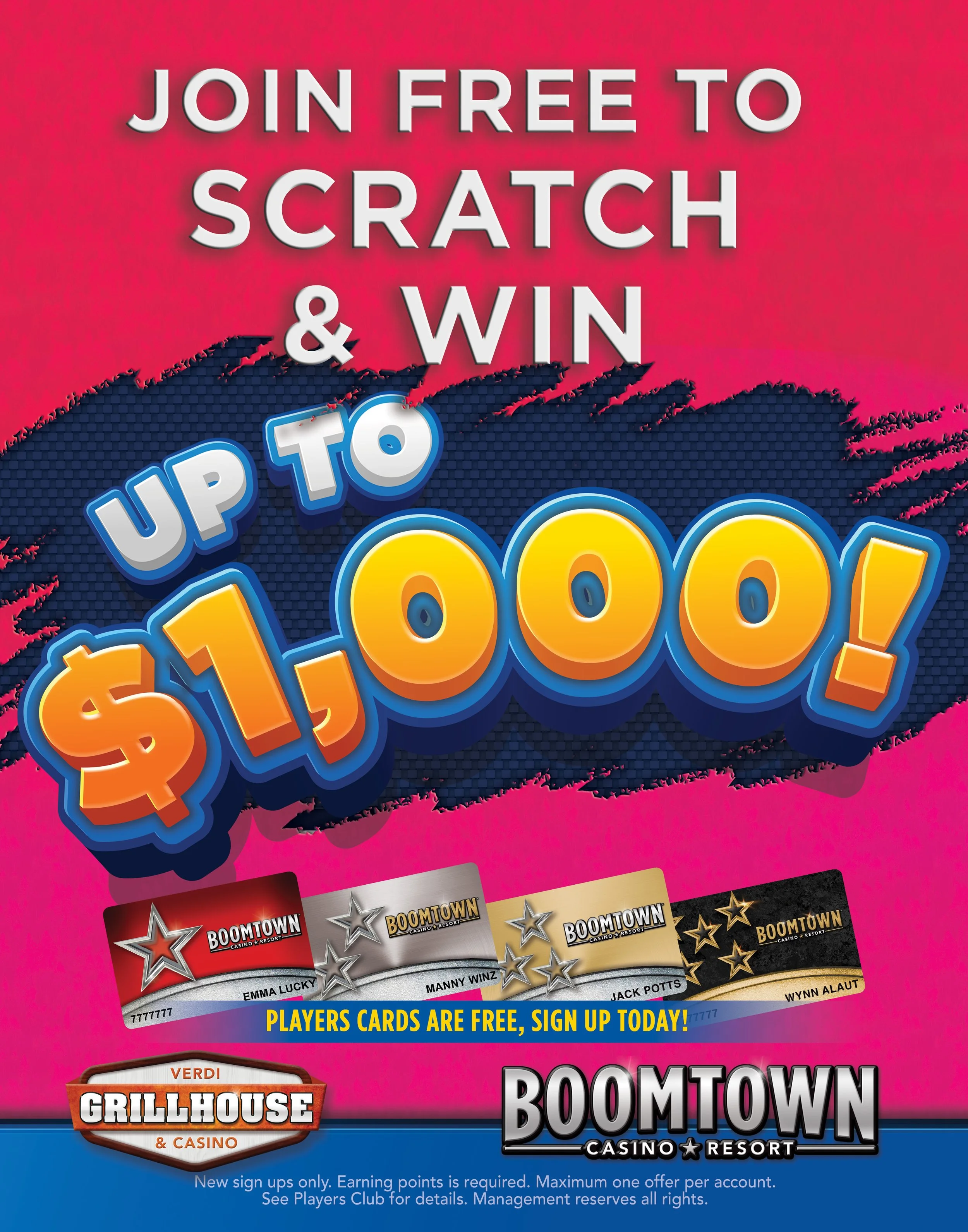 Join the Boomtown Players Club for FREE and get a chance to win up to $1,000 in Freeplay!